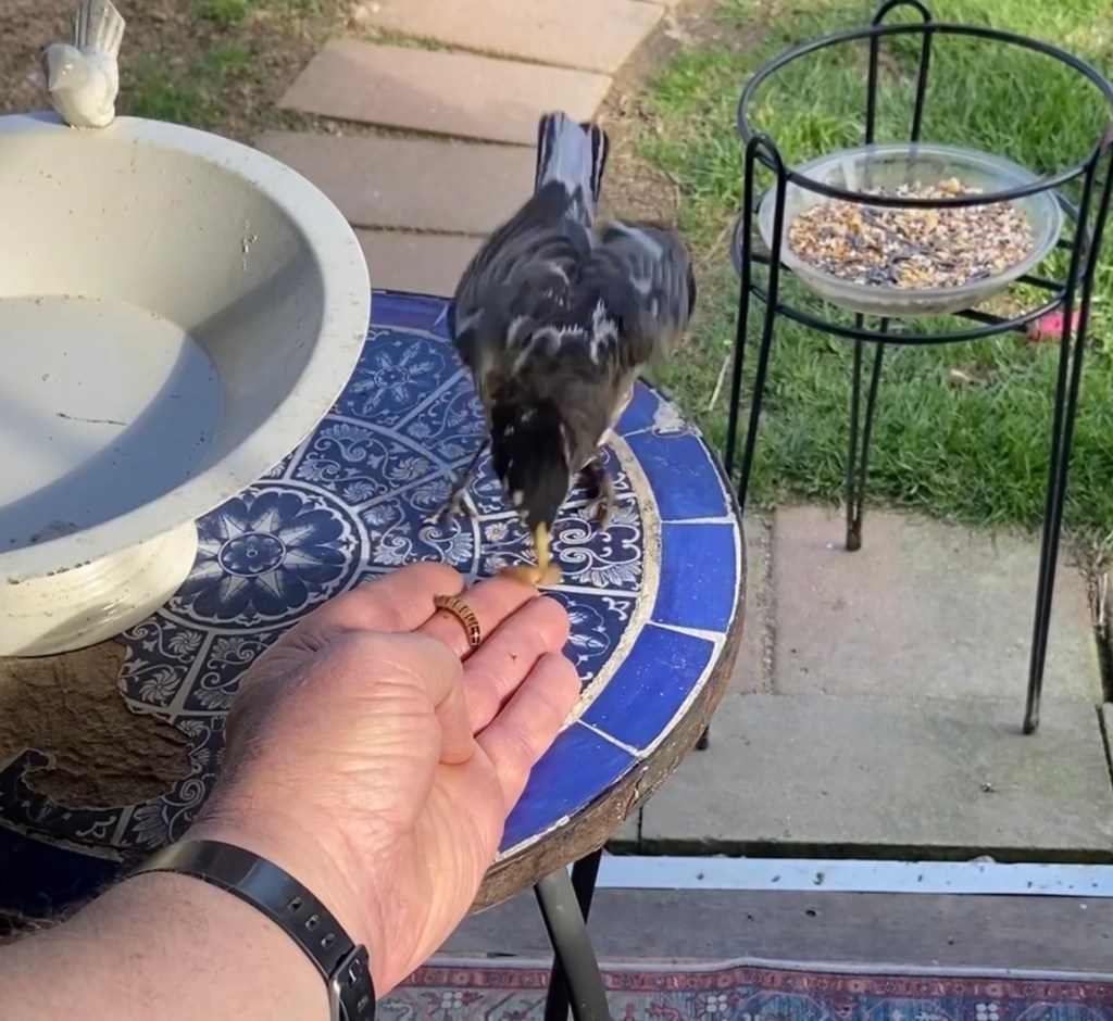 After church yesterday, as Kathy and I drove from Oniontown to Erie, we passed through a few minutes of snow, some if it coming down with a wintry attitude. This morning two cowbirds, one pigeon and a mourning dove are bobbing and pecking beneath the feeders and sipping from the birdbath. My thermometer reads 39 degrees and the Coleman’s backyard is soggy, neither of which discourages the flying menagerie out my windows. Mottled robin “Whitey” has stopped for mealworms. The usual grackles, sparrows, red-winged black birds and starlings come and go. Just now a cardinal and blue jay favored writing hut mate Sherlock Holmes and me with a splash of color. Although I’m content with overcast skies, I never turn away heaven-sent red and blue.